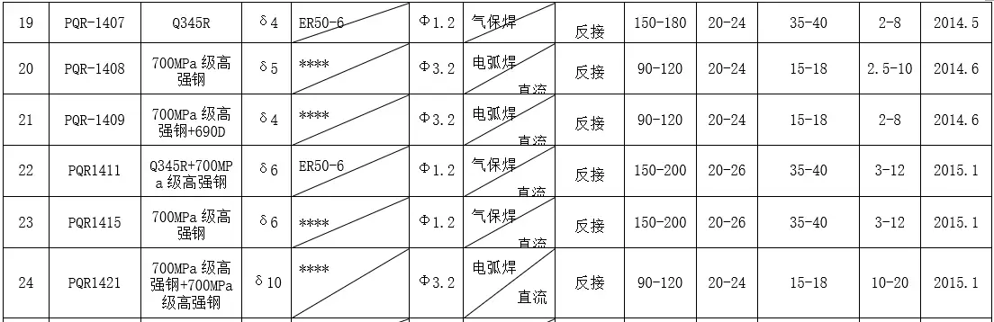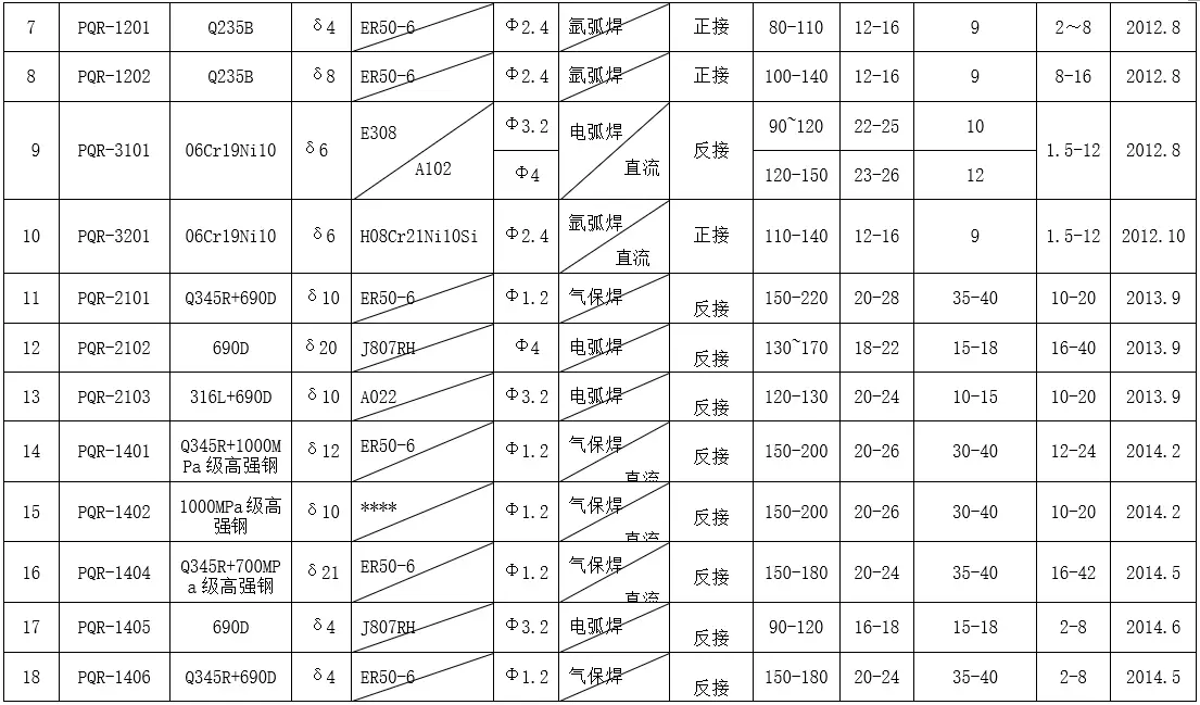 无恒安特种设备工程有限焊接工艺评定目录
